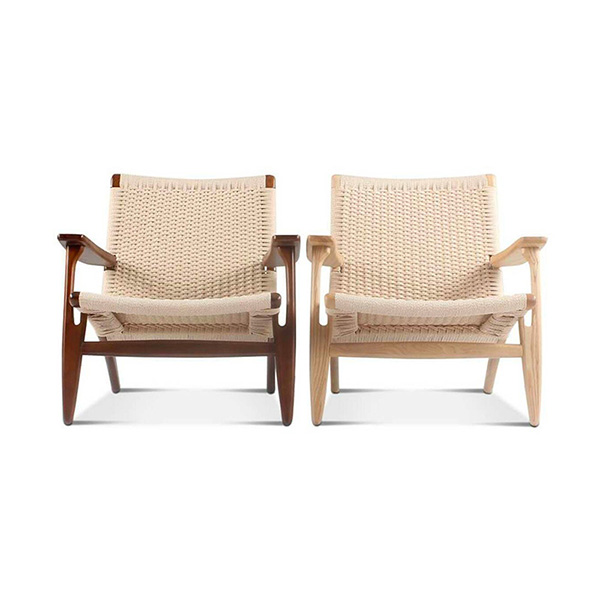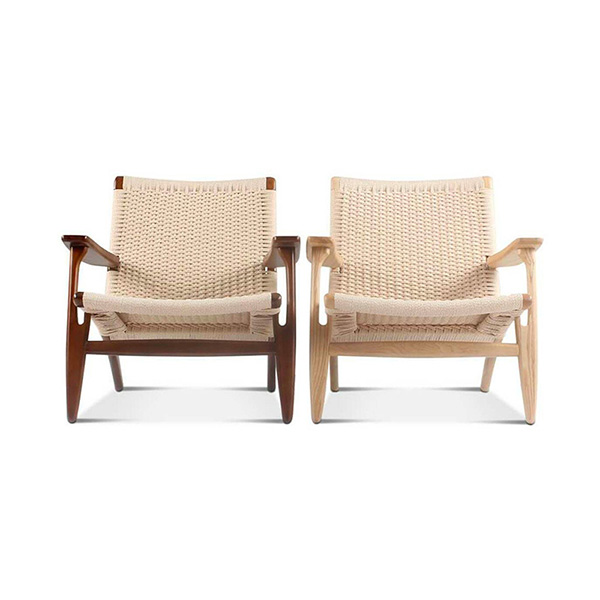 The CH25 Easy Chair was one of the first chairs inspired by modern Danish design and has sustained popularity for its ease of comfort and adaptability as a simple lounge chair. It was a revolutionary contribution to structural design for its use of woven paper cord as a substitution material during the Second World War. It takes a skilled craftsman 10 hours to hand weave this pattern for the unique seat and back, resulting in an incredible lounge chair with the timeless warmth of wicker and wood. Relaxed and intuitively ergonomic, the Easy Chair can blend with modern or traditional interiors in nearly any room in the house. Though it has a low seat and reclining back, the broad armrests make getting out this chair easy.