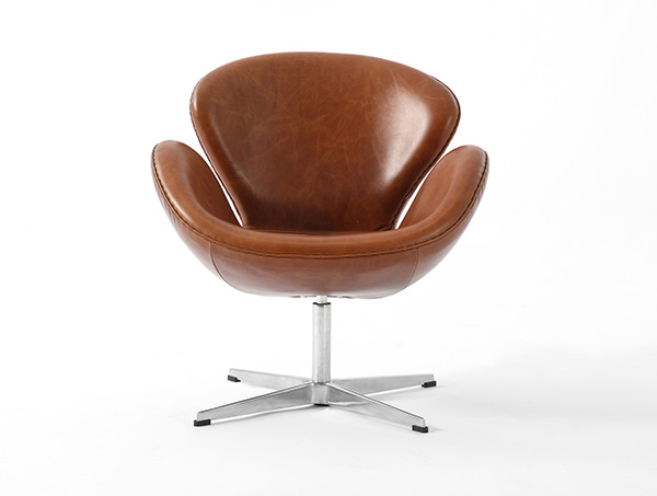 Inspired by the original design by Arne Jacobsen, this reproduction by Manhattan Home Design is a marvelous illustration of the whimsical side of the mid-century furniture design. This playful piece of furniture is instantly recognizable thanks to its curving fiberglass shape and beautiful armrests which cradle the seat.