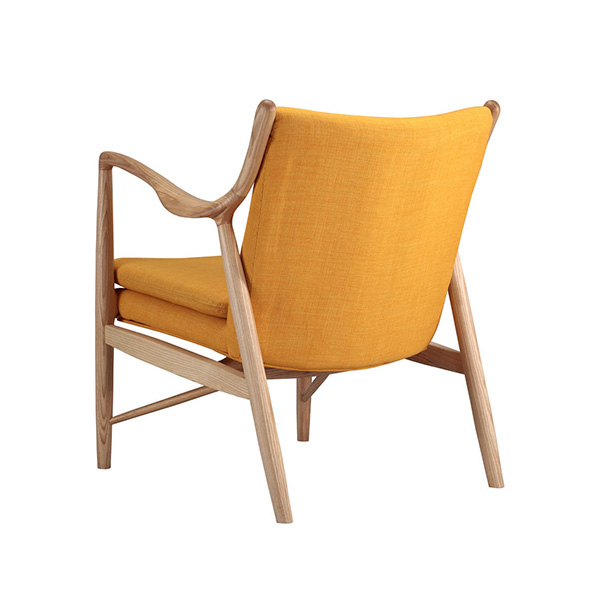 The year was 1945, and Finn Juhl had just released the original model 45 chair. The 45 was a break from the traditional armchair in that the seat and back were freed by design from the frame of the chair. A floating visual from all angles and an architecturally intriguing frame were the bi-products of this newly found freedom. Like the original, this exceptional reproduction features a solid timber American Walnut frame. Finn achieved the drawn-out windswept appearance by drawing the arms upward and forward while the mid seat frame section draws down and toward the back. Comfort is achieved through the foam wrapped and upholstered foam frame and plush multi-density seat cushion.