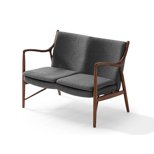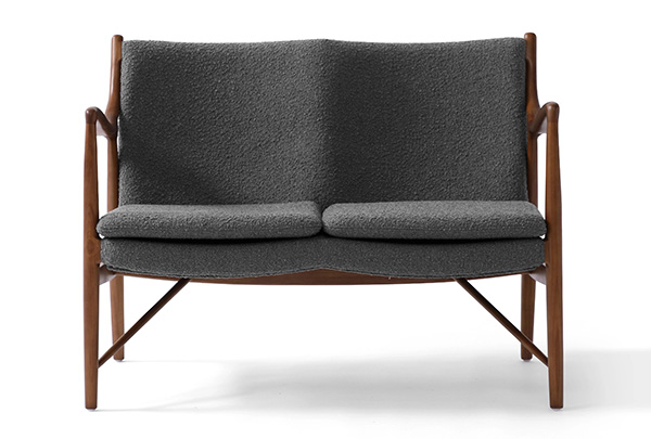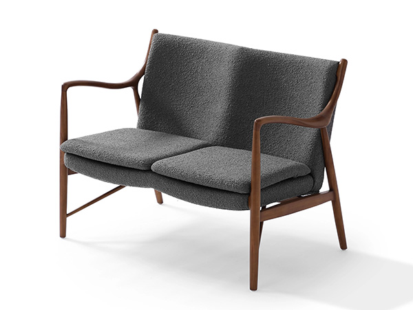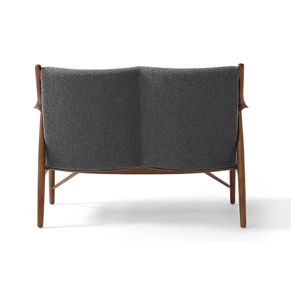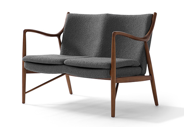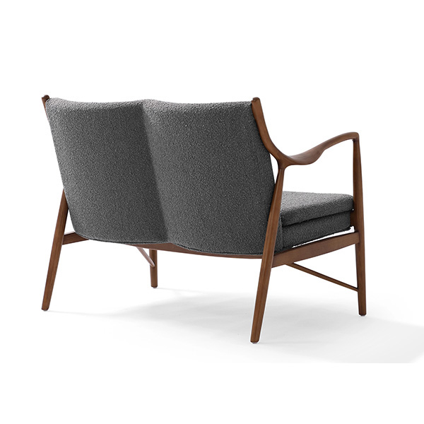 A well-recognized icon of mid-century modern design. Free-flowing, airy and elegant in concept. The original series was created in 1945 by Danish mid-century modern furniture designer Finn Juhl. In handcrafting this mid-century modern masterpiece, the Kardiel Copenhagen '45 combines quality material such as solid American Walnut timbers and durable boucle upholstery with attention to the original intricate design detail.