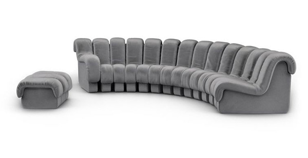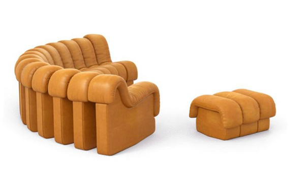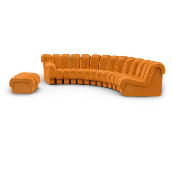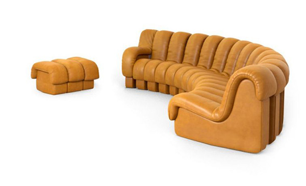 The DS 600 Sofa "non-stop" sofa was designed by Ueli Berger in 1972. Named after a mythical alpine creature, the Tatzelwurm, the DS sectional sofa is composed of narrow modular elements that can be expanded to create seemingly endless shapes. It is designed to allow for a combination of varying elements, rendering it possible to create a multitude of compositions. By always using the same module, you could technically create the longest sofa in the world, and in your space, you could create your unique design based on the needs of the environment. The sofa can be configured in countless different ways - from the iconic curve (as shown), an arc form or even a straight line - and everything in between.