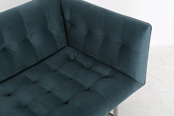 “Blind button” tufting on back, inner arm and seat platform