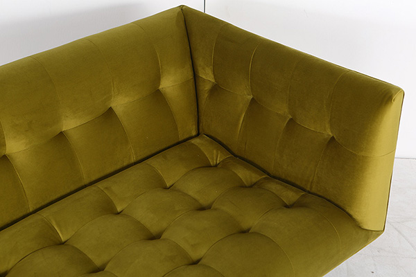 The Edward is a modern reinterpretation of a mid century modern classic. This exceptionally tailored design adapts well to both contemporary and classic modern themes. The cubic shape created by the mono height back and arms soften by the inward wrapping single row button tufting. Style: Mid-Century Modern Classic Sofa