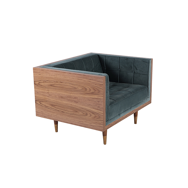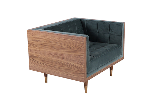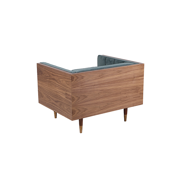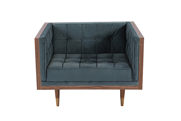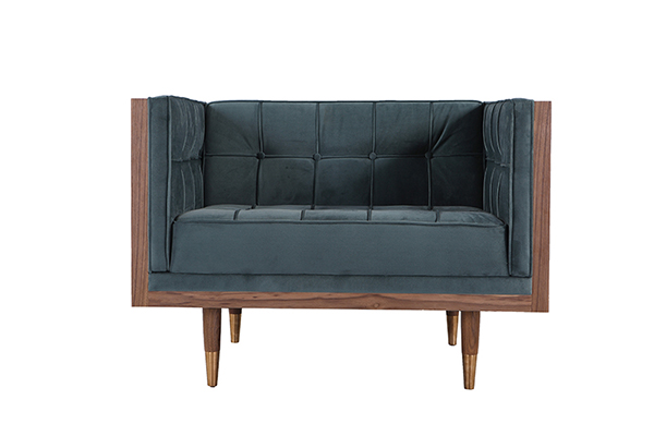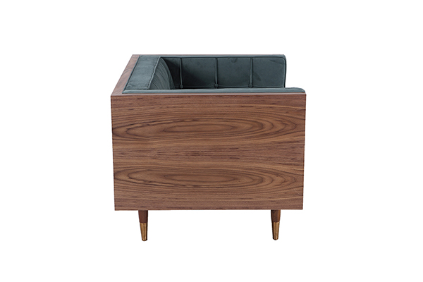 Clever, fresh & inspired by the 1950's modernist movement. At first glance, it may seem like a straight-up seating angle. However, the frame design within the wood outer frame is intently engineered with a degree of backward angle seating, tilt to the back. This combined with the soft, low profile full-length interior cushion, provides a surprisingly comfortable back pitched lounging experience.