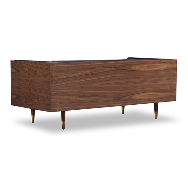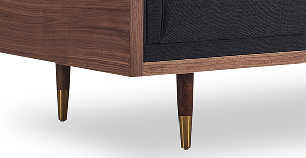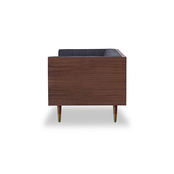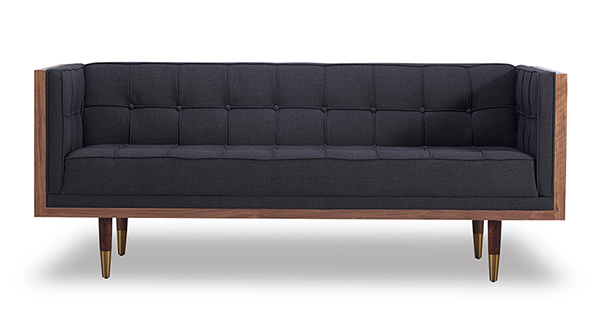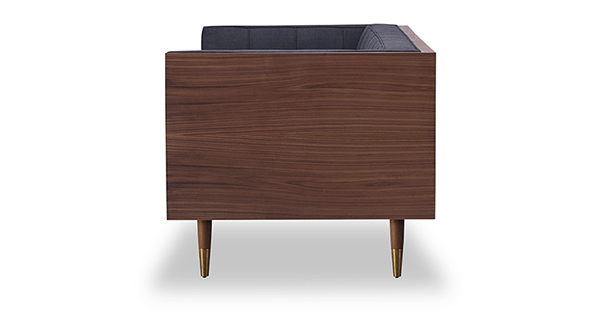WOODROW MID-CENTURY MODERN LOVESEAT Clever, fresh & inspired by the 1950's modernist movement. At first glance, it may seem like a straight-up seating angle. However, the frame design within the wood outer frame is intently engineered with a degree of backward angle seating, tilt to the back. This combined with the soft, low profile full-length interior cushion, provides a surprisingly comfortable back pitched lounging experience.