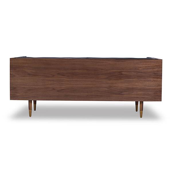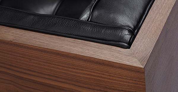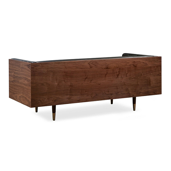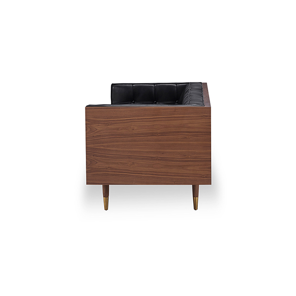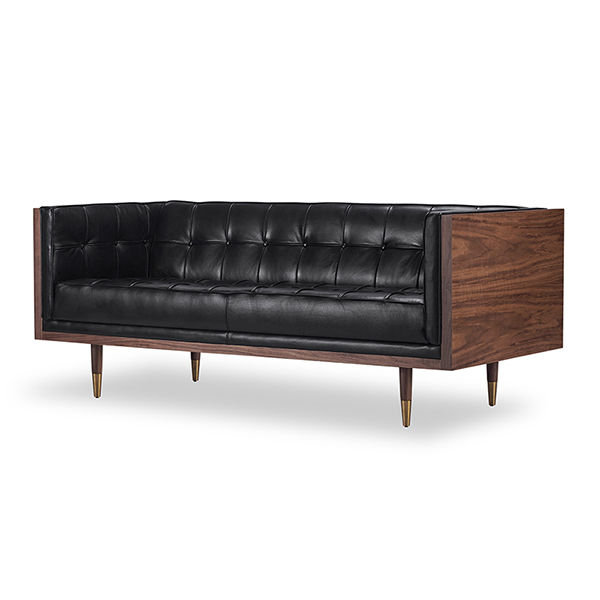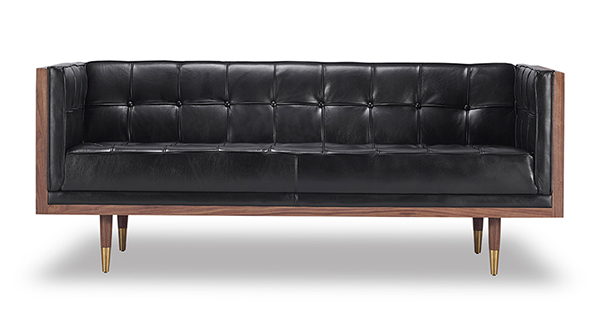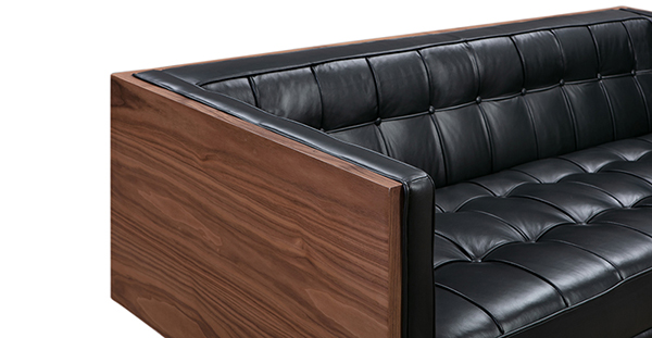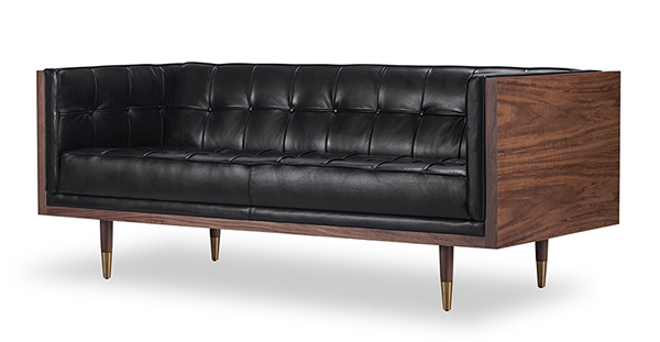 WOODROW MID-CENTURY MODERN LOVESEAT Clever, fresh & inspired by the 1950's modernist movement. At first glance, it may seem like a straight-up seating angle. However, the frame design within the wood outer frame is intently engineered with a degree of backward angle seating, tilt to the back. This combined with the soft, low profile full-length interior cushion, provides a surprisingly comfortable back pitched lounging experience.
