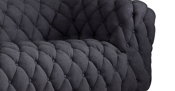 The striking full-body classic quilt button tufting is upholstered entirely by hand. The body is fully integrated, flowing from the seat, to back to arm in one gorgeous piece. An heirloom in the making, the cushion is multi-density for comfort and the frame is traditional wood construction for years of durable use.