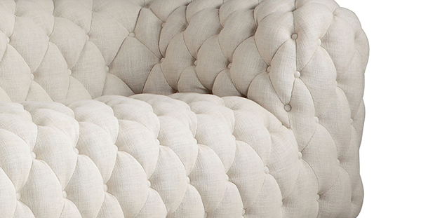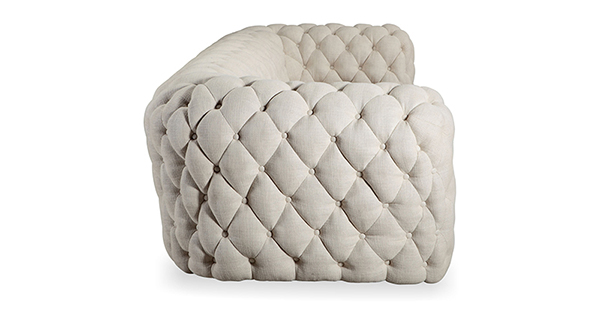 The striking full-body classic quilt button tufting is upholstered entirely by hand. The body is fully integrated, flowing from the seat, to back to arm in one gorgeous piece. An heirloom in the making, the cushion is multi-density for comfort and the frame is traditional wood construction for years of durable use.