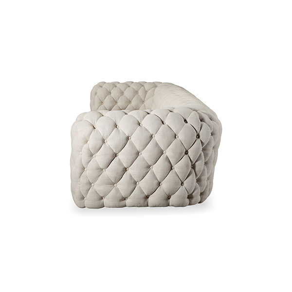 A reproduction of European design origin, Cumulus becomes the centerpiece of any space it occupies. The bold modern low profile shape exists in complete juxtaposition to the extensive opulent full body button-tufting design. Through the combination of both traits rises Cumulus, one of the most stunning modern classic sofa designs to date. Cumulus is nothing short of a work of art featuring mono-height back and arms and streamlined lineal low to the ground profile.