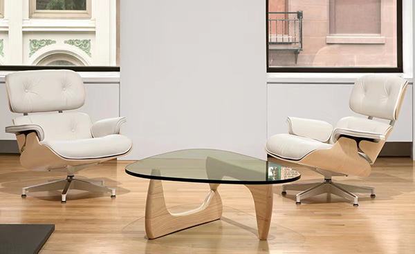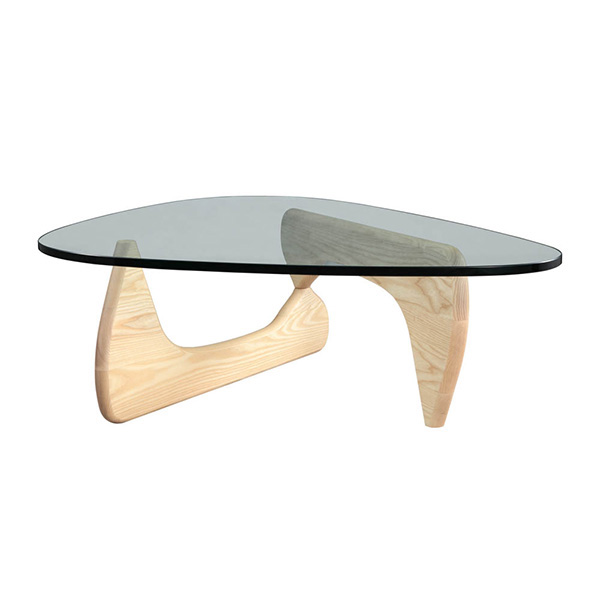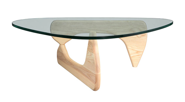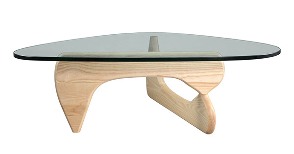 The perfect balance literally between art and furniture. Sculptor Isamu Noguchi created his distinctive table by joining a curved, wood base with a freeform glass top. The ethereal result does not diminish the practical design a sturdy and durable table. This marriage of sculptural form and everyday function has made the EM coffee table an understated and beautiful element in homes and offices since its introduction in 1948.