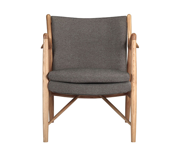 The year was 1945, and Finn Juhl had just released the original model 45 chair. The 45 was a break from the traditional armchair in that the seat and back were freed by design from the frame of the chair. A floating visual from all angles and an architecturally intriguing frame were the bi-products of this newly found freedom. Like the original, this exceptional reproduction features a solid timber American Walnut frame. Finn achieved the drawn-out windswept appearance by drawing the arms upward and forward while the mid seat frame section draws down and toward the back. Comfort is achieved through the foam wrapped and upholstered foam frame and plush multi-density seat cushion.