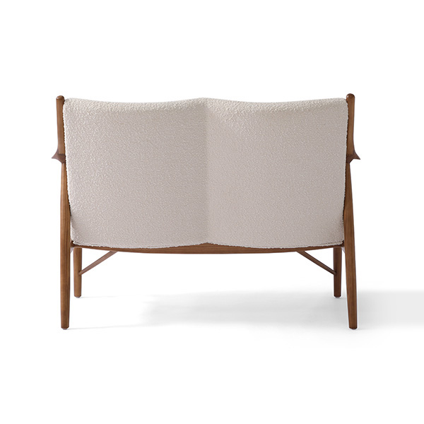A well-recognized icon of mid-century modern design. Free-flowing, airy and elegant in concept. The original series was created in 1945 by Danish mid-century modern furniture designer Finn Juhl. In handcrafting this mid-century modern masterpiece, the Kardiel Copenhagen '45 combines quality material such as solid American Walnut timbers and durable boucle upholstery with attention to the original intricate design detail.