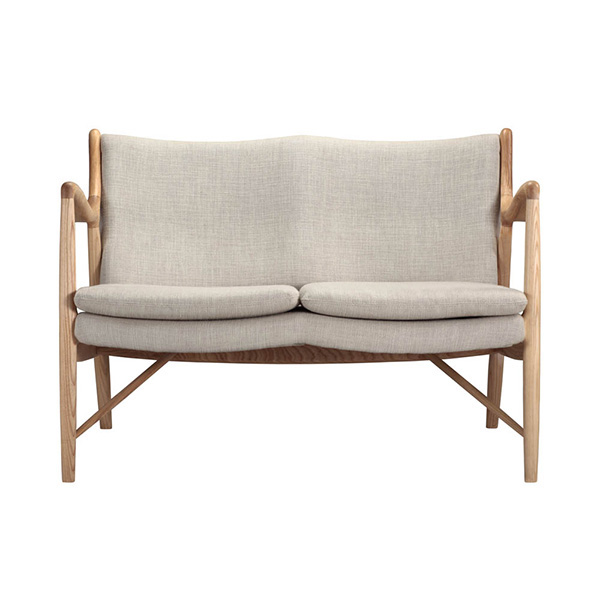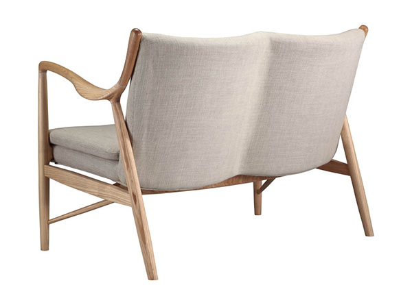 A well-recognized icon of mid-century modern design. Free-flowing, airy and elegant in concept. The original series was created in 1945 by Danish mid-century modern furniture designer Finn Juhl. In handcrafting this mid-century modern masterpiece, the Kardiel Copenhagen '45 combines quality material such as solid American Walnut timbers and durable boucle upholstery with attention to the original intricate design detail.