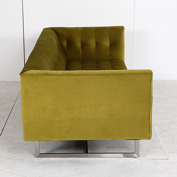 The Edward is a modern reinterpretation of a mid century modern classic. This exceptionally tailored design adapts well to both contemporary and classic modern themes. The cubic shape created by the mono height back and arms soften by the inward wrapping single row button tufting. Style: Mid-Century Modern Classic Sofa