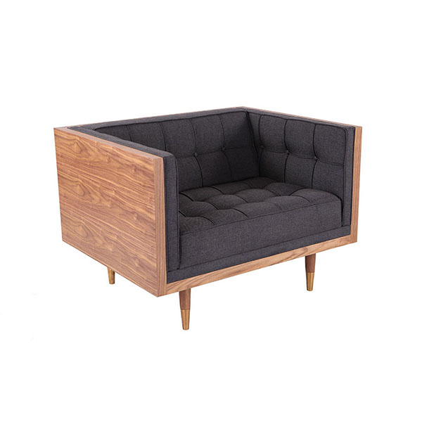 Clever, fresh & inspired by the 1950's modernist movement. At first glance, it may seem like a straight-up seating angle. However, the frame design within the wood outer frame is intently engineered with a degree of backward angle seating, tilt to the back. This combined with the soft, low profile full-length interior cushion, provides a surprisingly comfortable back pitched lounging experience.